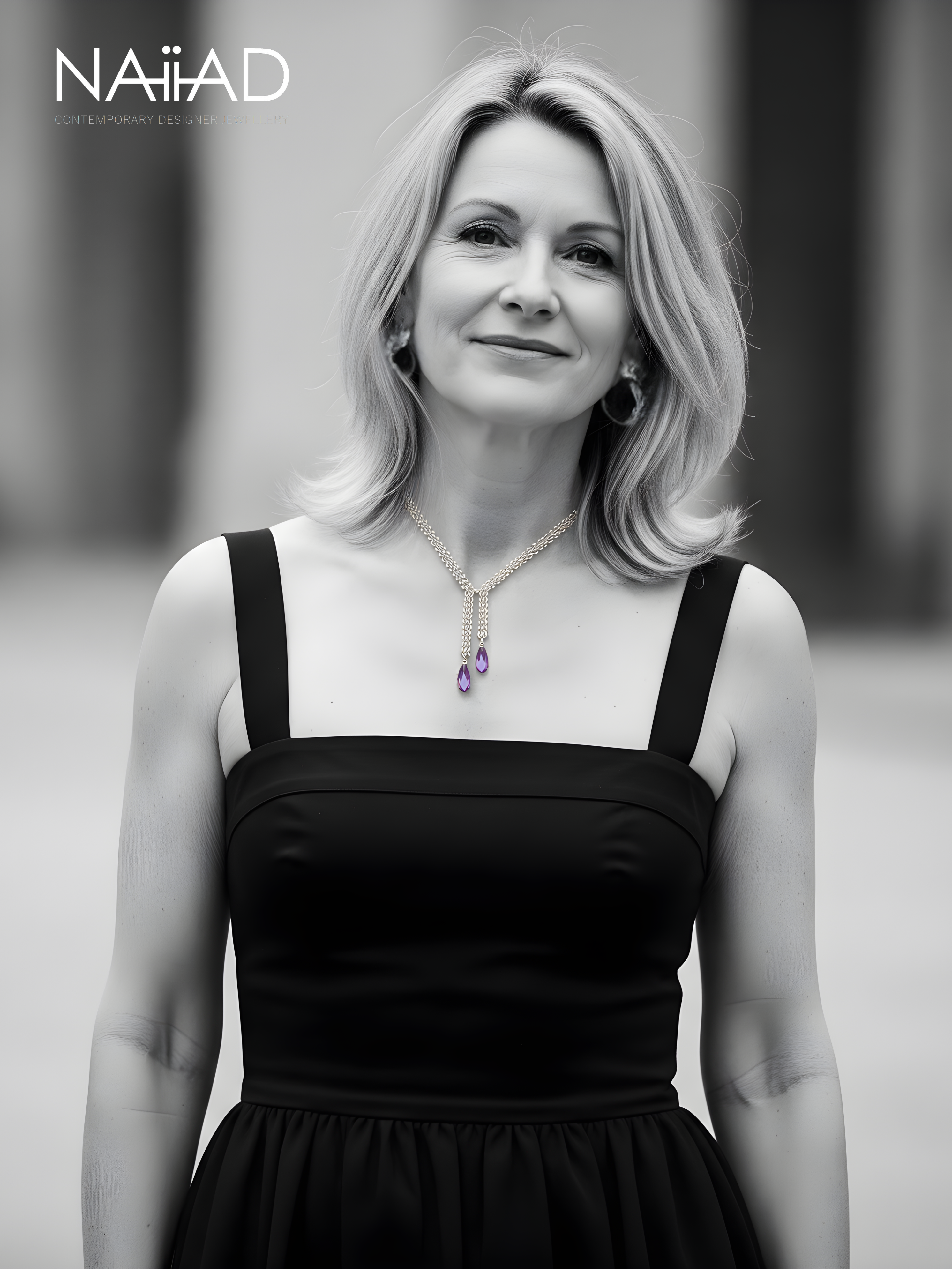 J’ai acheté à NAIIAD un collier en argent tour du cou ainsi que d’autres bijoux (bracelets et boucles d’oreille).Tous ces bijoux m’ont attiré par leur originalité, leur modernité et leur élégance. De plus le collier en argent m’a été envoyé dans un écrin magnifique, ‘très classe’ digne des grands couturiers parisiens ~ Danielle Ferrante